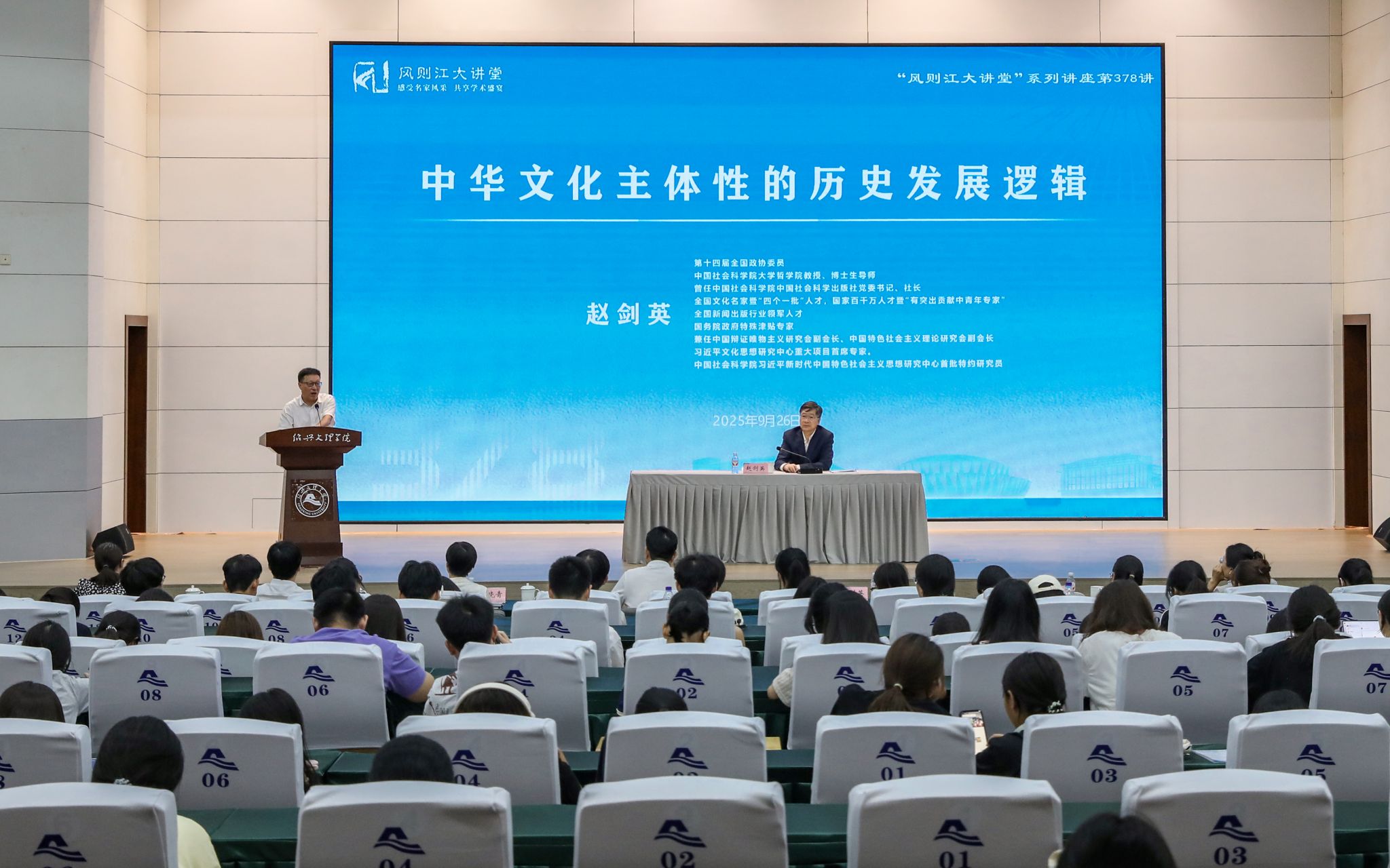 9月26日晚,风则江大讲堂第378讲“中华文化主体性的历史发展逻辑”专题讲座在铁城科教馆一楼报告厅举行,第十四届全国政协委员,原中国社会科学院中国社会科学出版社党委书记、社长,中国社会科学院大学哲学院教授、博士生导师赵剑英应邀作报告。校党委书记崔凤军、校纪委书记唐晓青、副校长赵浪平,校党委委员、宣传部部长宋浩成,办公室、人文社科处主要负责人、马克思主义学院党政领导班子成员和全校师生代表200余人聆听讲座。原校党委书记、浙江省习近平新时代中国特色社会主义思想研究中心(久久精品一区二区|久久久一区二区三区|欧美日韩视频|欧美福利视频|高清欧美性猛交xxxx黑人猛交|久久久www成人免费精品|在线观看成人网站研究基地)主任汪俊昌教授主持讲座。